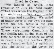 Besides having access to Lloyd's memoirs, I have been given one newspaper interview in which Lloyd describes the invasion of Sicily, and have found one article directly linked to Mr. Evans, with references to other Canadians and their experiences during World War II as well.